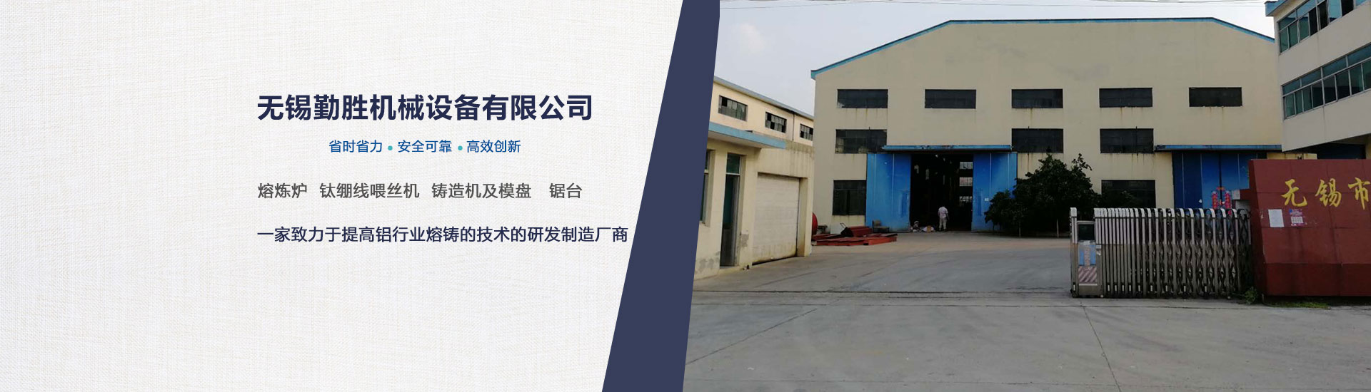 公司簡介 1.1.1 無錫勤勝機(jī)械設(shè)備有限公司的愿望是致力于提高鋁行業(yè)熔鑄的技術(shù)。 1.1.2 無錫勤勝機(jī)械設(shè)備有限公司密切跟蹤 的冶煉和鑄造技術(shù)的發(fā)展方向,學(xué)習(xí)創(chuàng)新,研 制開發(fā), 生產(chǎn)銷售鋁行業(yè)熔鑄用的各種相關(guān)設(shè)備和材料。 1.1.3 無錫勤勝機(jī)械設(shè)備有限公司以強(qiáng)大的專業(yè)設(shè)計(jì)人員和遍布全國的銷售網(wǎng)絡(luò),竭誠貢獻(xiàn) 的技